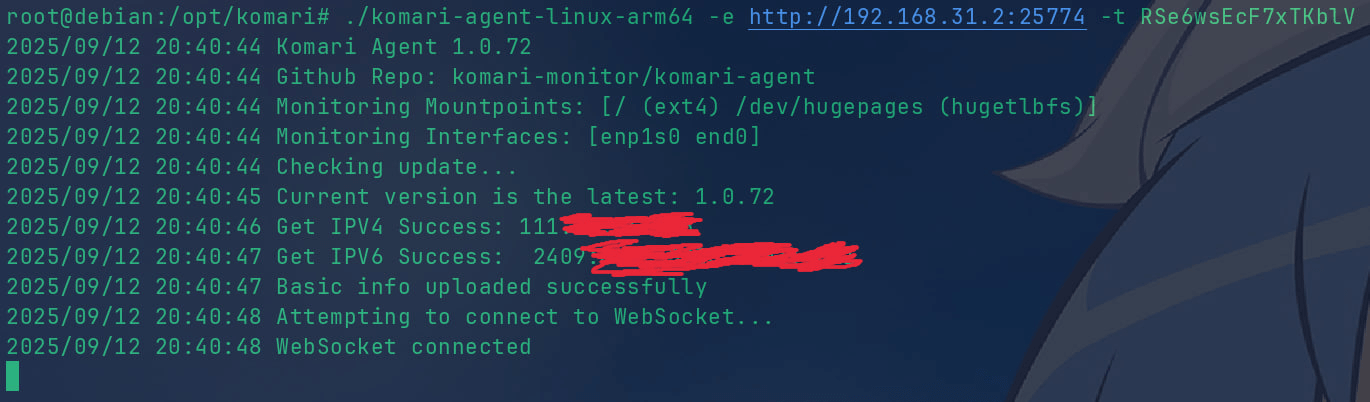 如果你已经确认你的数据不再被需要,可强制删除 /usr/local/bin/komari-monitor-rs 文件: