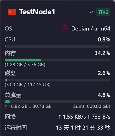 在本文编写期间,我临时创建了一个 Komari 服务在本地